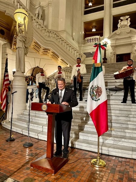 Lieutenant Governor Mike Stack hosted a vibrant Mexican Independence Day celebration at the Capitol Rotunda, as yet another example of CCAP’s National Day Program in Harrisburg. Speakers included Robert Torres, Deputy Executive Secretary of the Commonwealth’s Department of State; Alicia Kerber, Mexican Consul in Philadelphia; and Peter Longstreth, President of the Consular Corps Association of Philadelphia and Honorary Consul of Uruguay.
